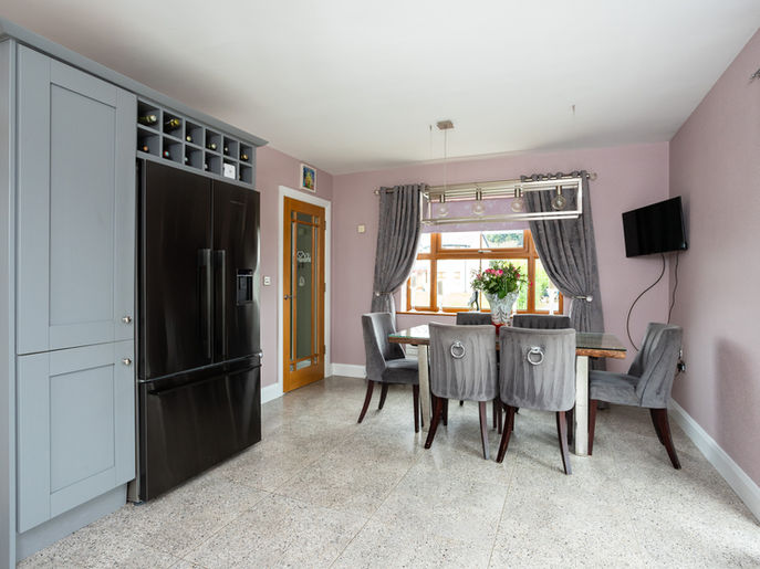 Kitchen/Dining:- Tiled floor, glass panel door leading in, excellent light from the front and rear windows and double doors which lead to side garden, newly fitted kitchen with shaker doors, quartz worktops and splash back, excellent storage, integrated dishwasher, fitted roller blinds and curtains in the dining area, two separate stunning light fittings and bright tasteful colour scheme, door leading to utility room and back door.