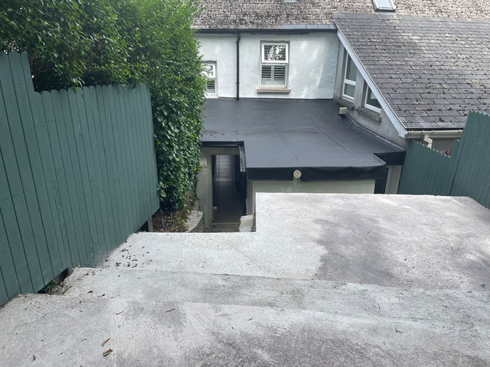 Steps at rear to raised back yard, securely walled in boundary, nice wooded views, outside living space, well drained throughout.