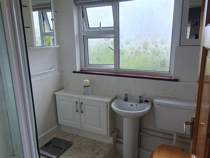 Shower Room:- 6 5 x 5 10. Mila electric shower, wash hand basin, medicine cabinet, wc, fan heater.