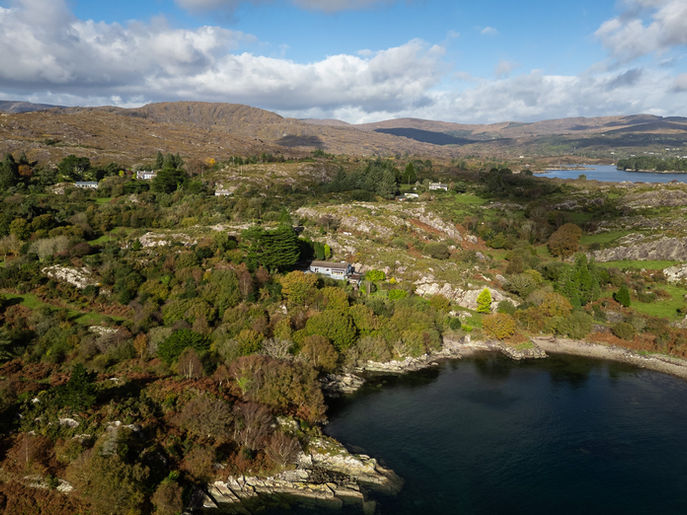 Apart from the seascapes and marine activity this glorious and tranquil estate is unlike any other alcove within Glengarriff Harbour. Accessed via a private laneway which is abutting the public road the residence is nestled down and sheltered with an eastern south facing aspect. Currently the residence is a five bed within the ca. 160.4 m2 floor plan and has a drop down decking area which leads to cultivated gardens and direct waterfront access.